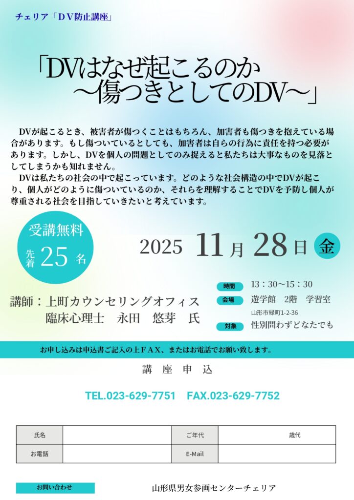 DV防止講座「DVはなぜ起こるのか~傷つきとしてのDV~」