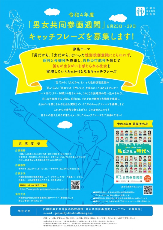 内閣府男女共同参画局総務課「男女共同参画週間キャッチフレーズ募集係」