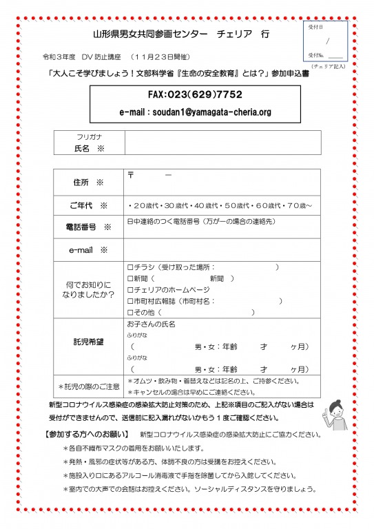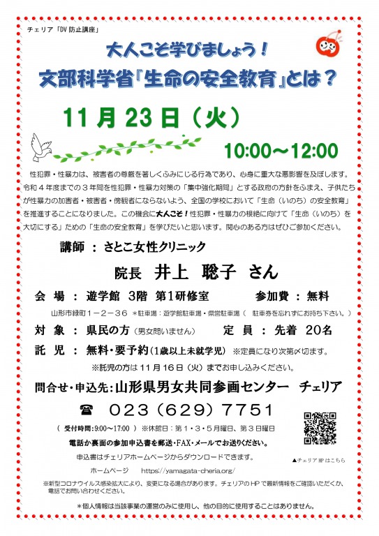 問合せ・申込先:山形県男女共同参画センター チェリア