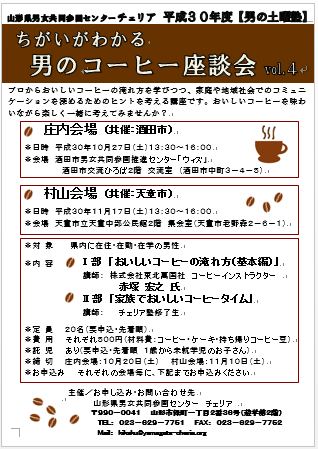 本年度は、村山地区(天童市と共催)と庄内地区(酒田市と共催)の2地区で開催します!