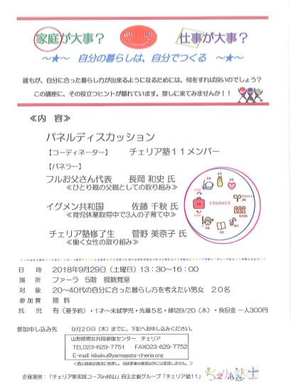 【お申込み・お問合せ】 山形県男女共同参画センター チェリア
