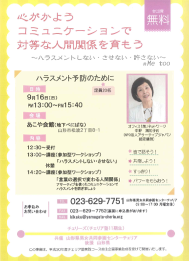共催:山形県男女共同参画センター チェリア