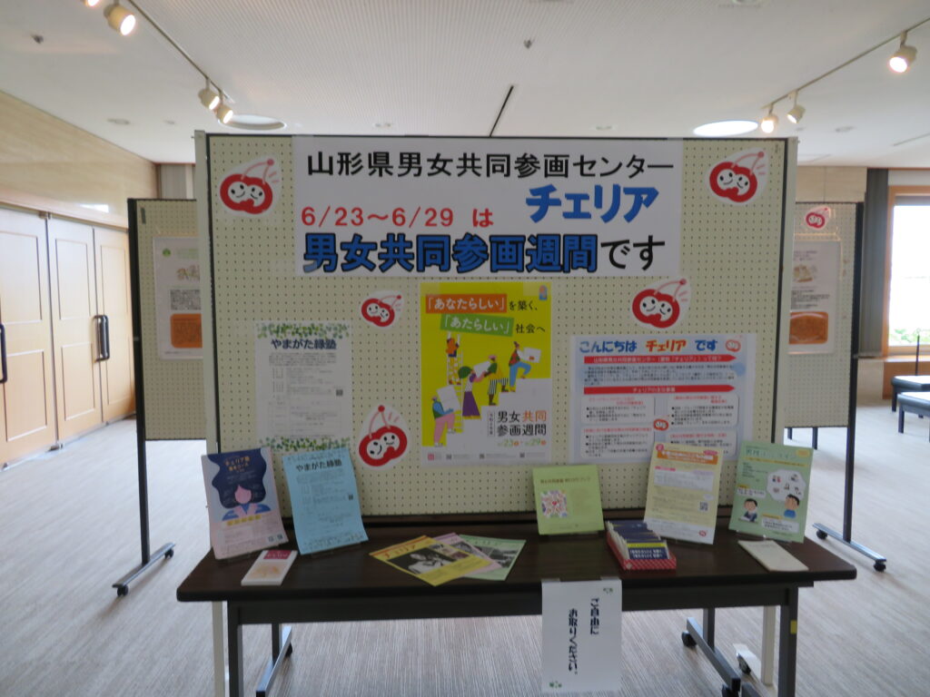 山形県男女共同参画センターチェリアでは、6月23日~30日の間、遊学館2階ギャラリーにて男女共同参画に関するパネル展示を開催します。是非ご来場ください。
